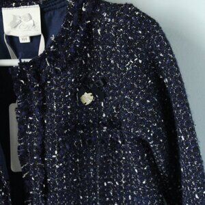 Navy blue tweed long coat, navy/black/white mix