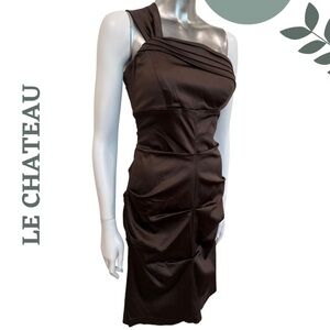 Le Château Chocolate Brown One-Shoulder Satin Lined Cocktail Dress - Size Small