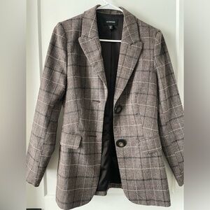 Timeless and elegant Le Château tailored blazer in a classic glen plaid pattern.