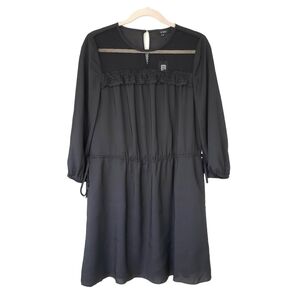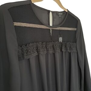 Le Gali Black Boho Babydoll Dress Mesh Top Drawstring Waist 3/4 Sleeve