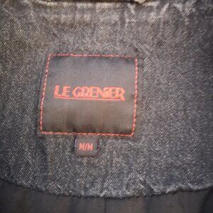 Le Grenier Ladies Size Medium Full Zip Lined Drawstring Waist Black Demin Coat