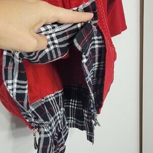 Le Grenier Red Knit Sweater Black White Plaid Collar 3/4 Sleeve Pullover Large