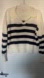 Le Lis sweater, in very good condition - light wash wear, small stain on back near arm seam (see photos). Knit fabric, striped pattern, oversized fit, collared neckline. Marked size small