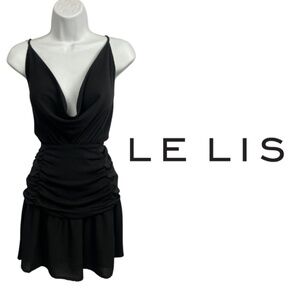 Le Lis Collection Black Draped Cowl Neck Mini Dress with Ruched Waist – Size M