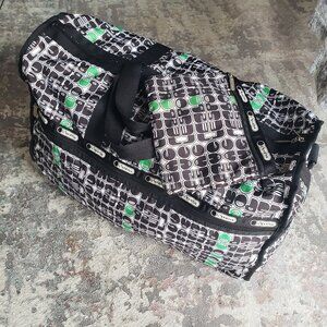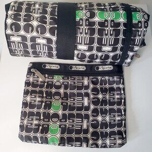 Le Sport Sac Green White Black Weekender Duffle Bag Suitcase + Makeup Tote