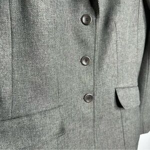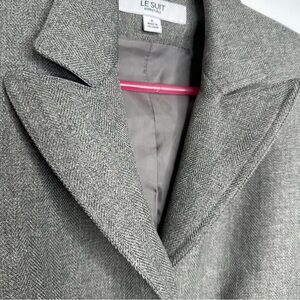 This Le Suit blazer features a sophisticated gray color perfect for both professional and casual settings. Its tailored fit and elegant design make it a versatile addition to any wardrobe.
