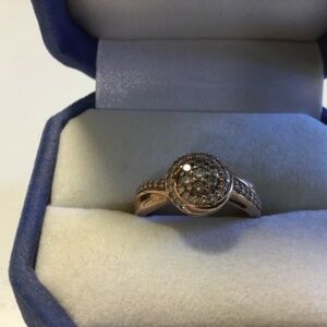 Georgeous round brilliant cut diamond ring. 10K strawberry gold.