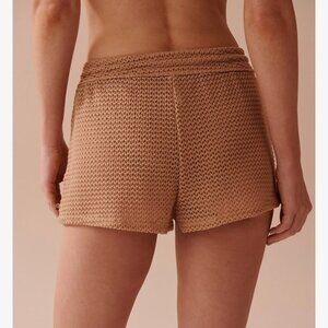 Le Vie en Rose Coconut Crochet Swim Mid Rise Shorts Cover Up Size L