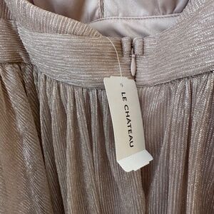 Sparkly, new with tags, prom/grad dress. Has fine pleated, skirt bottom. Crossover back straps that are adjustable.