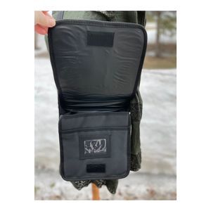 100% PVC. Velcro flap closure. Multiple zip pockets. Rear 3 fold pocket with new/sealed makeup brush kit. No damage noted. Pet and smoke free home.