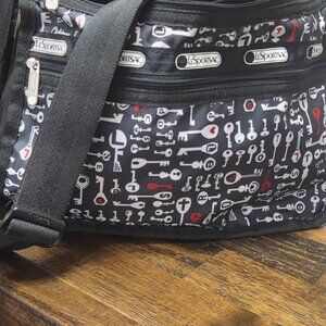 Two main compartments with zipped closures, Zip out expandable front main compartment, Exterior back pocket with zipped closure, Two exterior front pockets with zipped closures, Interior hanging zip closure pocket (in front compartment), Adjustable shoulder strap (Max. 52in/132cm),