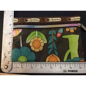 LeSportSac Small brown floral pouch rainbow zippered Water Resistant Cosmetic