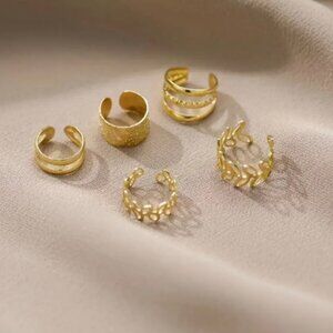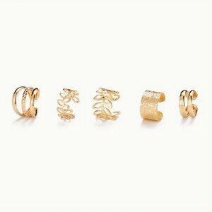 🆕 Leaf Cuffs Hollow in Gold Tone Set Of 5 Golden FILIGREE Earring Cuff 5pc
