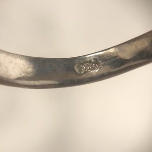 Leafs/vine motif wraps around, stamped 925. Slightly adjustable, set to a 7.5 currently.