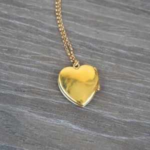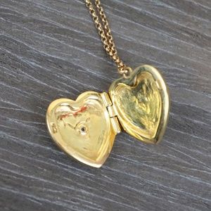 Leah Alexandra gold heart locket. In good condition, but there are some minor scratches/scuffs on the front and back of the pendant.