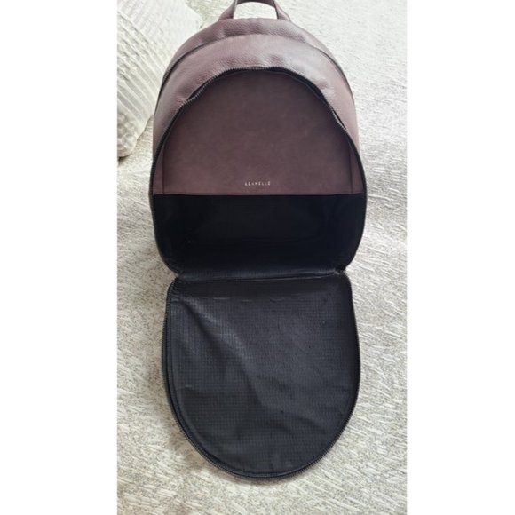 Leanelle Divergent Bag, special Lady Hammer edition in Coco Dust. Leather backpack with compartment with separate access. Upper compartment for your essentials and lower isolated compartment with separate access and thermal lining perfect for your lunch containers or snack. Perfect condition! In addition to the two main compartment, it has a small zippered compartment along with two side pockets for drinks or snacks and a back pocket to fit your laptop (small) or tablet. Comes with original dust bag. When I used to work in an office, I always struggled to find a stylish bag to carry my lunch and this was the perfect find! Unfortunately the company closed its doors during the pandemic.