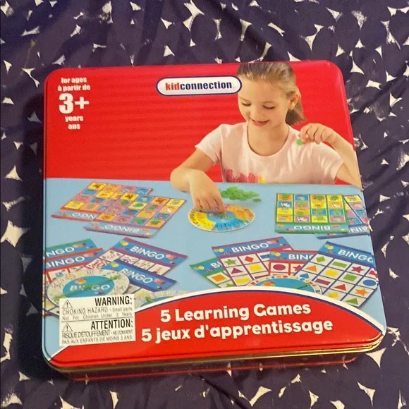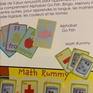 Engage your child with the Learning Games Set. This vibrant multicolor set is perfect for interactive learning and fun. For ages 3+ years. Set of 5 fun games helps teach and reinforce different levels of learning skills through hands-on play. Games include Alphabet Go Fish, Bingo, Memory Match, Dominoes, and Math Rummy. Ideal for teaching language, math and memory skills, problem-solving, logical thinking, colours, shapes, and much more. Still sealed. Never used.