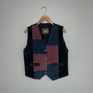 Learsi Leather Vest Men's Size Medium Red Blue Black Vintage Patchwork Lined