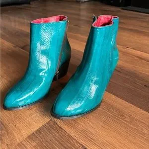 Beautiful turquoise booties! Wish they fit! Smoke free home.