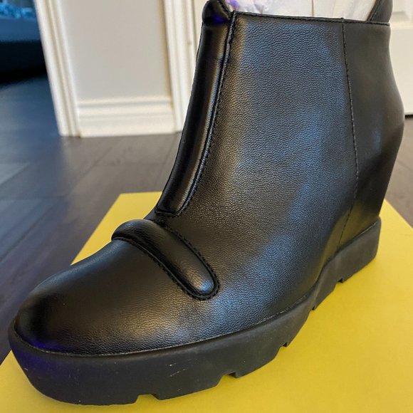 Black Zest Leather Wedge Boot - Women, size 8.5.