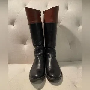 In great condition. Leather black and brown boots. Very comfortable. Showing some wear on upper parts. Please see all photos and comment for questions. Size 38. Fits like an 8
