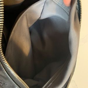 Genuine black leather Coach purse. Dimensions are 13” x 11”. One long and one short strap to style crossbody, over the shoulder or as a handbag. Classic style that looks gorgeous with anything! Mint condition!