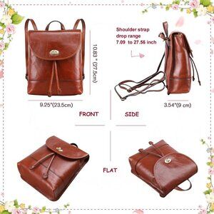 Full Grain Leather Backpack Purse or Women: It is a women backpack purse made of full grain vegetable tanned leather imported from Italy, rust-proof zinc alloy hardware and durable cotton poly twill lining. Please note this women leather backpack purse has unique Sfumato leather craft and wear-resistant edge paint to create a vintage leather look. Convertible Backpack Purse for Women: It is a women backpack purse with multi-purpose. It can be converted from a backpack purse into a shoulder bag by its adjustable straps.It is a portable women backpack purse for travel and normal use. Small Leather Backpack Purse for Women: It is a women backpack purse features 2 compartments for 9.7 inch iPad, built in 2 zip pockets and 2 slip pockets inside. Package: Dust-proof branded white non-woven pocket. This backpack purse can be sent to for families,friends and colleagues as a gift on Father's Day,Christmas Day and Thanksgiving Day.Size: 9.25 x 10.83 x 3.54 inch;
