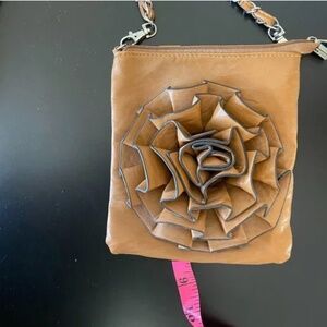 Charming and practical, this brown leather crossbody bag features a cute decorative leather flower on the front for a playful touch. Compact yet functional — perfect for everyday errands or casual outings.