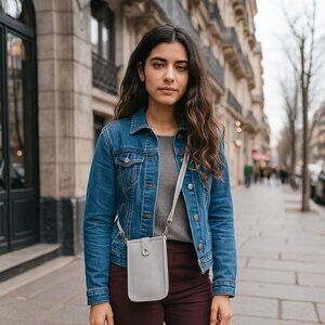 Leather Crossbody Grey Phone Sling Wallet Bag–Small Shoulder Bag for Daily Use