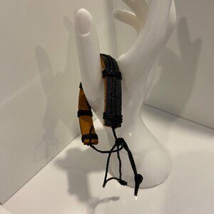 Leather Feather Design Adjustable genuine leather Bracelet black & brown unisex