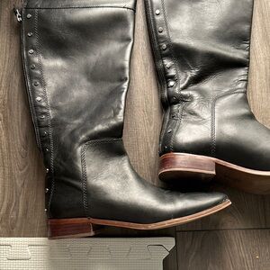 Step out in style with these elegant black knee-high boots. Perfect for any occasion, these boots offer both comfort and sophistication.