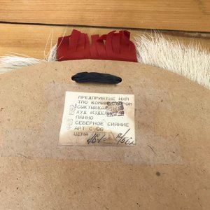 Vintage folk art wall hanging made from fur and leather. Dated Feb 1992 on the back, with Russian text. Approx. 14" across, has leather loop on the back for hanging. Pre-owned vintage: good condition with light signs of display/storage.