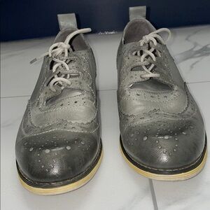 Leather Gray Brogue Oxford Shoes Lace up Formal Dress Shoe Size 37.5