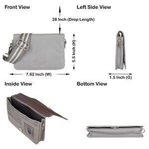 Leather Grey Crossbody Shoulder Bag – Sling Messenger Bag for Work, Daily Use
