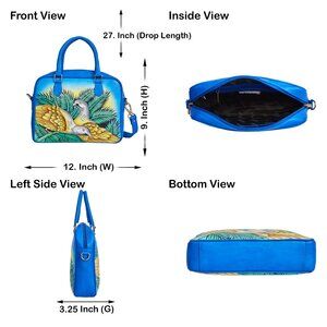 Leather Hand-Painted Blue Ladies' Top Handle Handbag, Crossbody Sling Bag, Purse