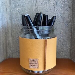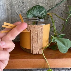 Handcrafted by my talented sister “Little Mountain Woman” from recycled material and salvaged leather. All her own original creations.