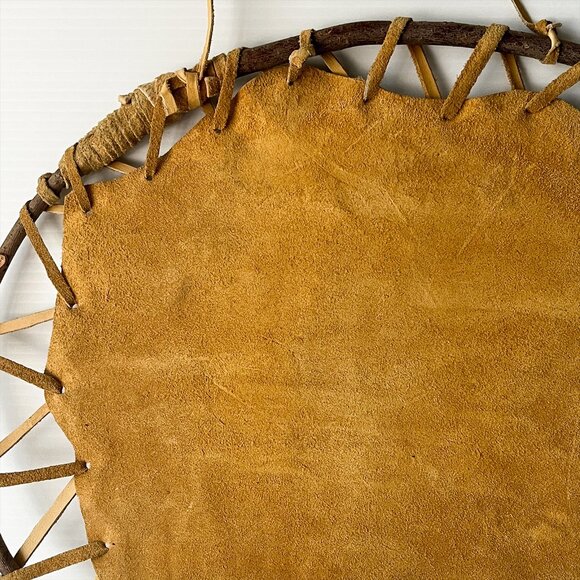 • Hand-stretched on a natural wood branch frame with an authentic, rustic look