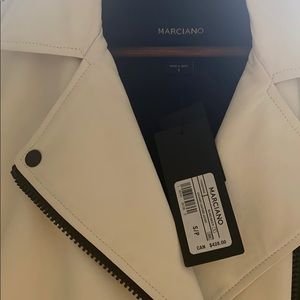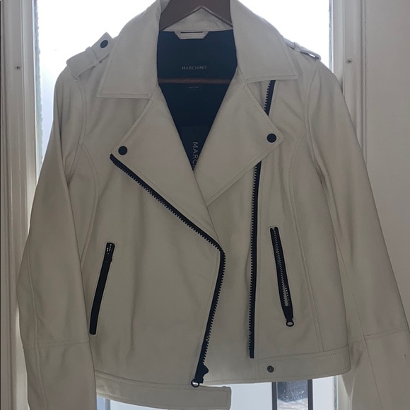 Details: Perfect for layering, this ultra-soft genuine leather moto jacket is crafted with a notched lapel, buttoned shoulder epaulettes and topstitching. Finished with front zipper pockets and matte buttons. Snap-button waist. Contrast-trim design. Asymmetrical zipper closure. Ultra-soft genuine leather moto jacket Notched lapel