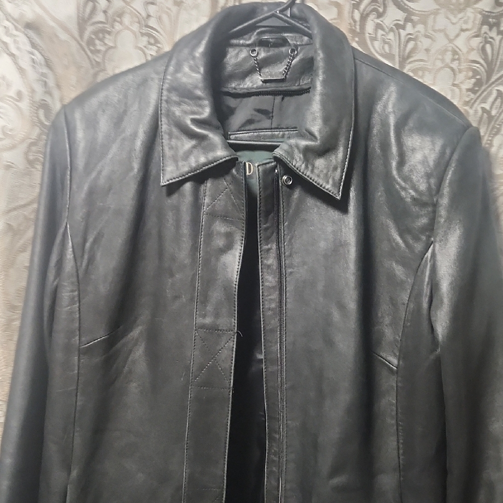Elevate your style with this sleek black leather jacket. Perfect for any occasion, this jacket offers both comfort and sophistication.