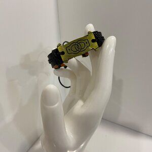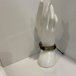 This bracelet features a metal handcuffs centerpiece and adjustable leather strap, offering a blend of style and comfort for everyday wear.
