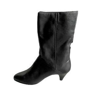 Leather Mid-Calf Sherpa Lined Heeled Boots Buckle Winter Black 10