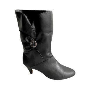Leather Mid-Calf Sherpa Lined Heeled Boots Buckle Winter Black 10