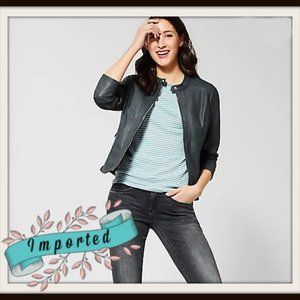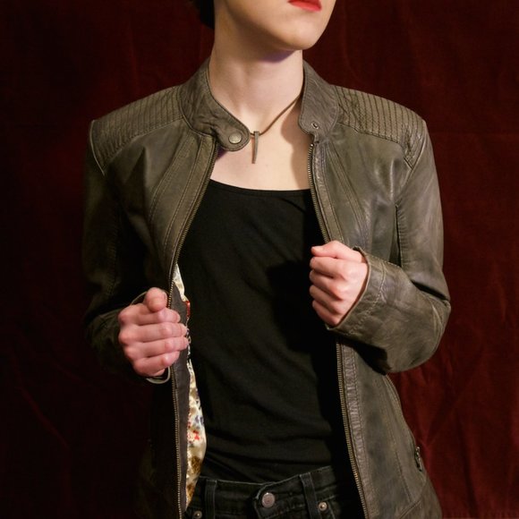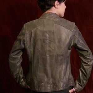 This dark grey, lined moto jacket comes from German company Street One. Made of buttery-soft genuine sheep's leather and fully lined.