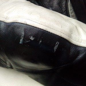 SPYKE vented leather racing suit. Used. Black, White, and Silver. European Size 54. Waist 35 inches