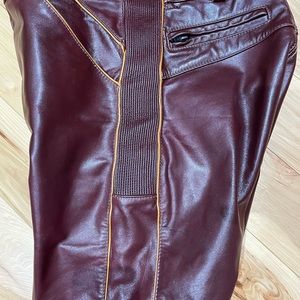 Honda line Leather Pants with Approx. 13” zippered legs for fitting over boots.