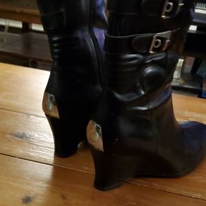 Real leather fashion riding boots. EUC. Barely worn. "Donna" model. Shift protection, silver plate on heel, wedge sole. These boots make a statement. Wear them riding or just for the look.