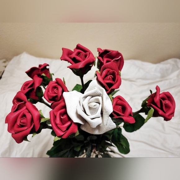 Everlasting bouquet of long stemmed roses, hand crafted from fine soft leather.