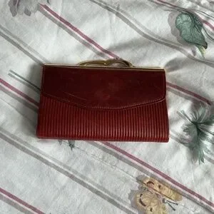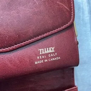 A Tilley original made in Canada calf leather wallet. Perfect for when you need to carry less in your handbag. In mint condition. Rust colour with gold hardware.