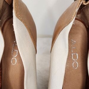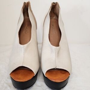 Creamy White Black & Tan Platform Wedge Peeptoe Highheels, by ALDO.