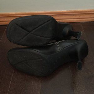 These have been very gently used, only worn a few times. Nice quality Westies brand shoes. Great for work or casual wear. Black in colour with off white contrast stitching. Genuine leather upper with a man made sole. Size 6.5 M.